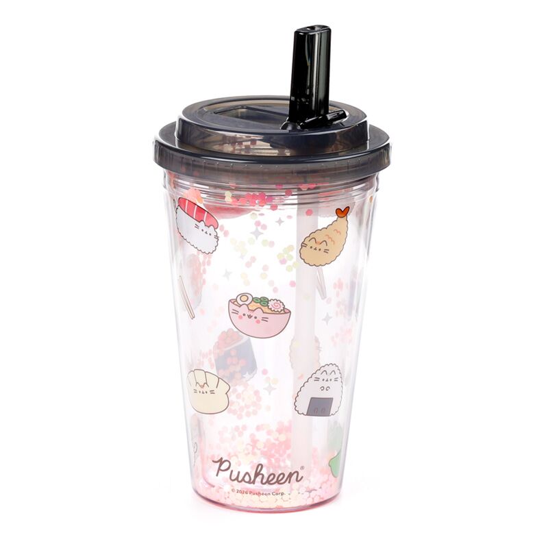 Splitterfri Pusheen the Cat Sushi Club Dubbelväggig Kopp & Sugrör