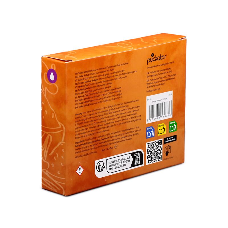 - Produktinformation: Varje reed diffuser kommer med fullständiga instruktioner. Placera diffuserstenen på träunderlägget. Lägg till 3 - 5 droppar av doftoljan till stenen. Låt stenen absorbera oljan och placera på vald plats. Lägg till mer doft när det behövs för en långvarig doft.