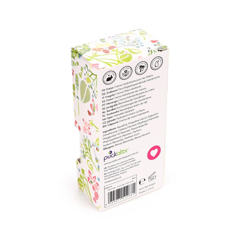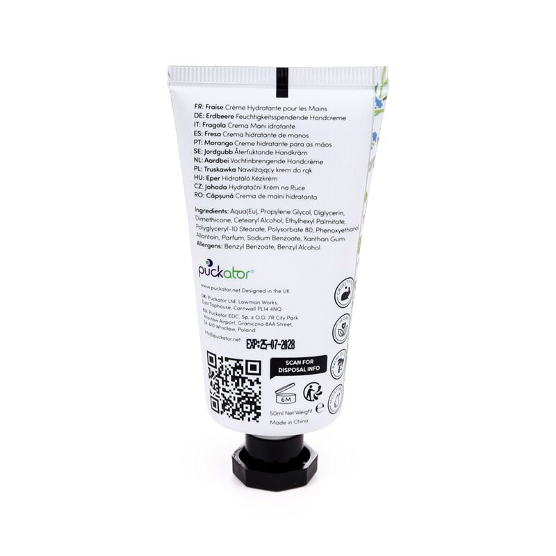- Material: Polyetylen och Aluminium (Tub), Polypropen (Lock) och Handkräm