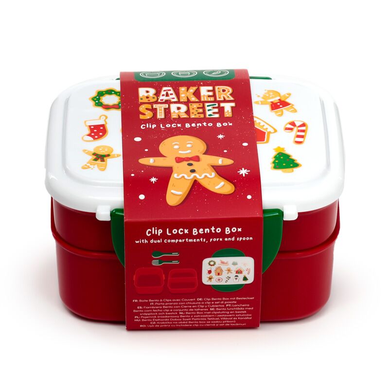 Jul Baker Street Pepparkaka Clip Lock Stalad Bento Lunchlåda med Bestick